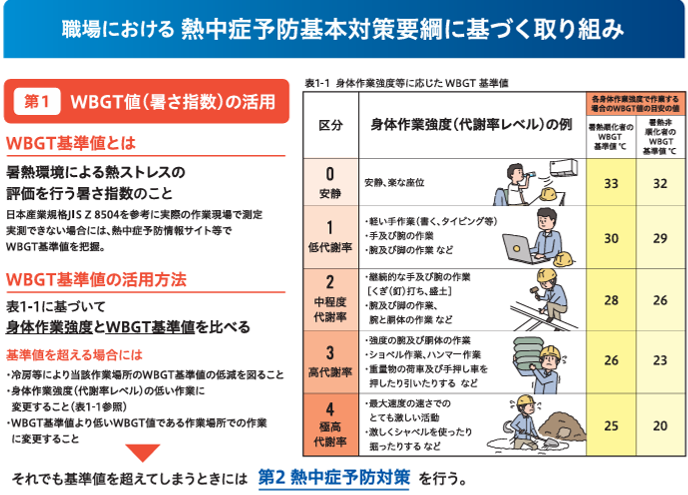さらに、「WBGT(暑さ指数)28℃以上」または「気温31℃以上」の環境下で、1時間以上、または1日4時間を超える作業が見込まれる場合は、特に重点的な対策が必要とされています。